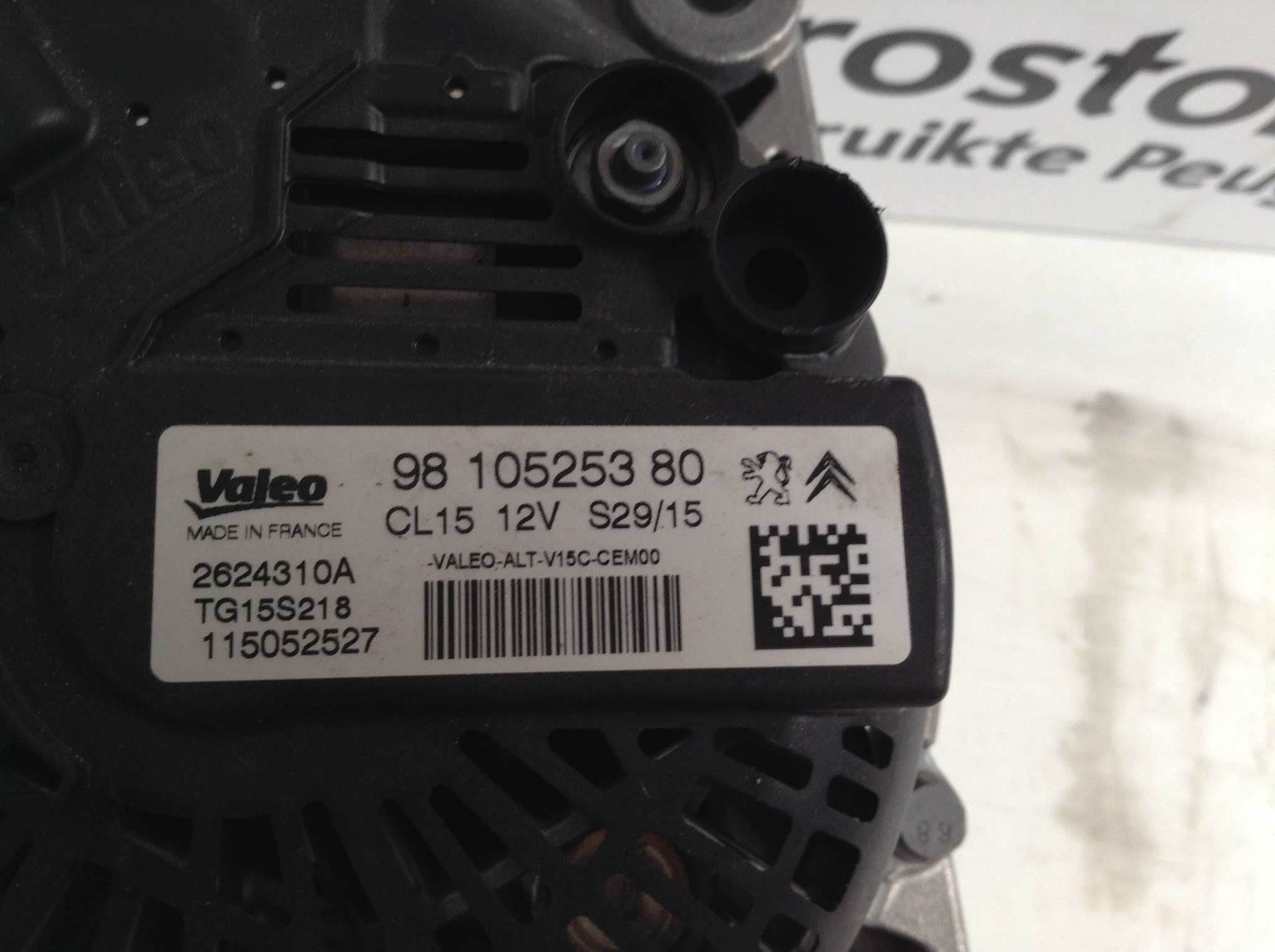 Lichtmaschine 9810525380 PEUGEOT 3008 P84E cl15 12V valeo 100,-