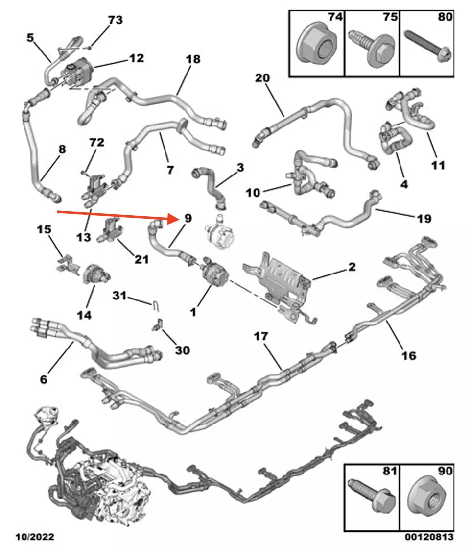 Radiator hose Electric drive Peugeot 208 E 9829834380